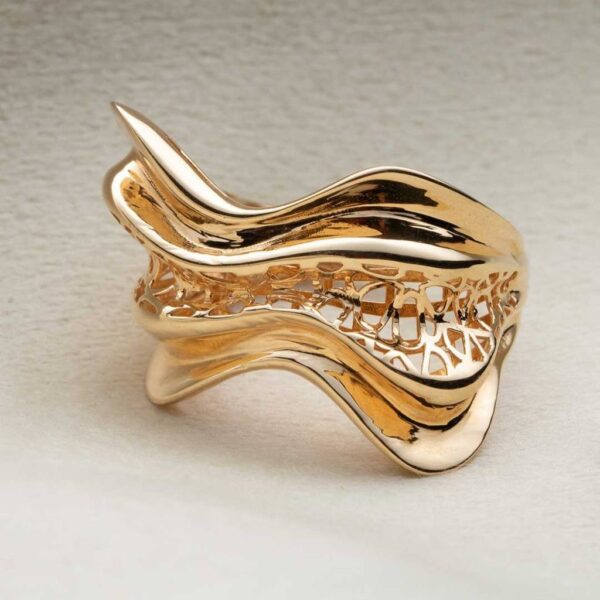 در این انگشتر زیبا، الماسهای گرد درخشان به زیبایی در کنار حروف طلایی X قرار گرفتهاند، نمادی از عشق و ارتباطات که قدرت و پایداری عشق را نشان میدهد. هر الماس با دقتی بینظیر انتخاب شده و با نهایت دقت و ظرافت در ساختار طلایی قرار داده شده تا طراحی نهایی با شکوه و خیرهکننده به نظر برسد.